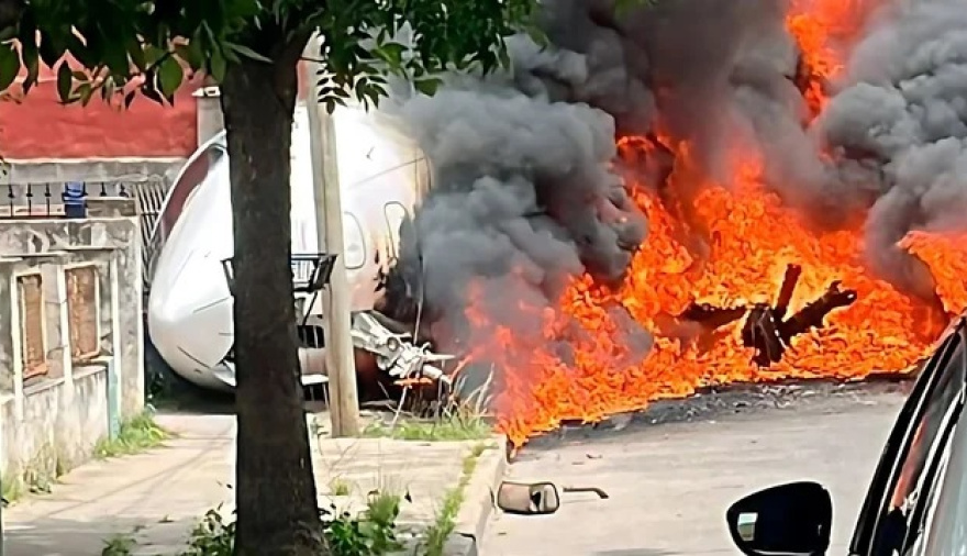 Tras el impacto, el avión se incendió, generando una columna de humo negro visible desde varios puntos de la zona.