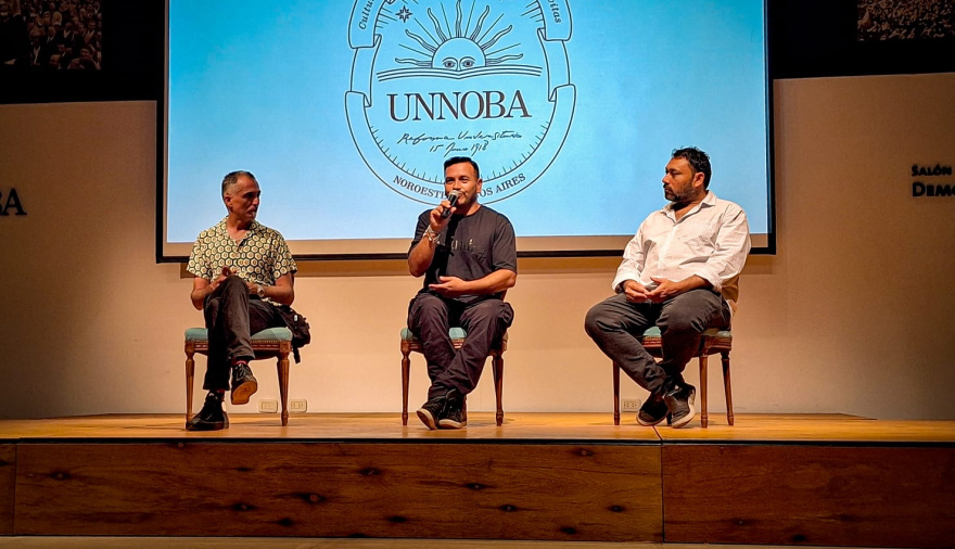 En una actividad organizada por ATUNNOBA, gremio que agrupa a los trabajadores no docentes de la Universidad Nacional del Noroeste, Daniel Santucho Navajas, nieto restituido número 133, desarrolló una vasta agenda en la ciudad de Junín, acompañado por el secretario general de la entidad sindical Jorge Mendoza y el secretario de prensa de la Asociación del Personal de la Universidad Nacional de San Martín (APUNSAM), Javier Abinet.