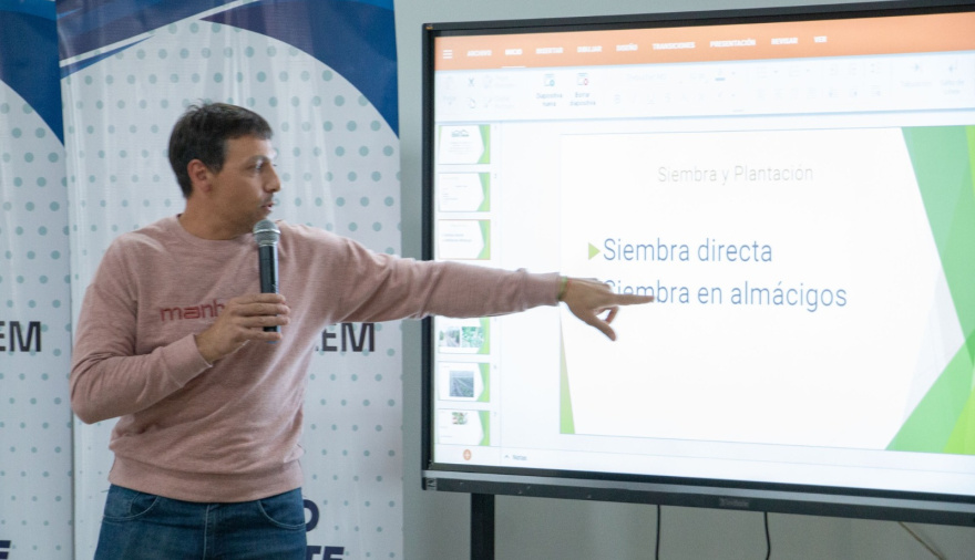 Seguidamente, y apoyado por una presentación digital, el Técnico Agropecuario Darío Díaz explicó detallada pero sencillamente los pormenores del proceso de siembra, contemplando todas las etapas: preparación del suelo, siembra, trasplante, clima, cuidados, tutorados, protección de los cultivos, sistemas de riego, uso de flores y aromáticas –para evitar la aplicación de productos químicos, pero lograr al mismo tiempo el control de los insectos que dañan las plantas- y recuperación del suelo para la próxima siembra. Una charla amena y accesible, que luego abrió paso a las numerosas consultas del público.