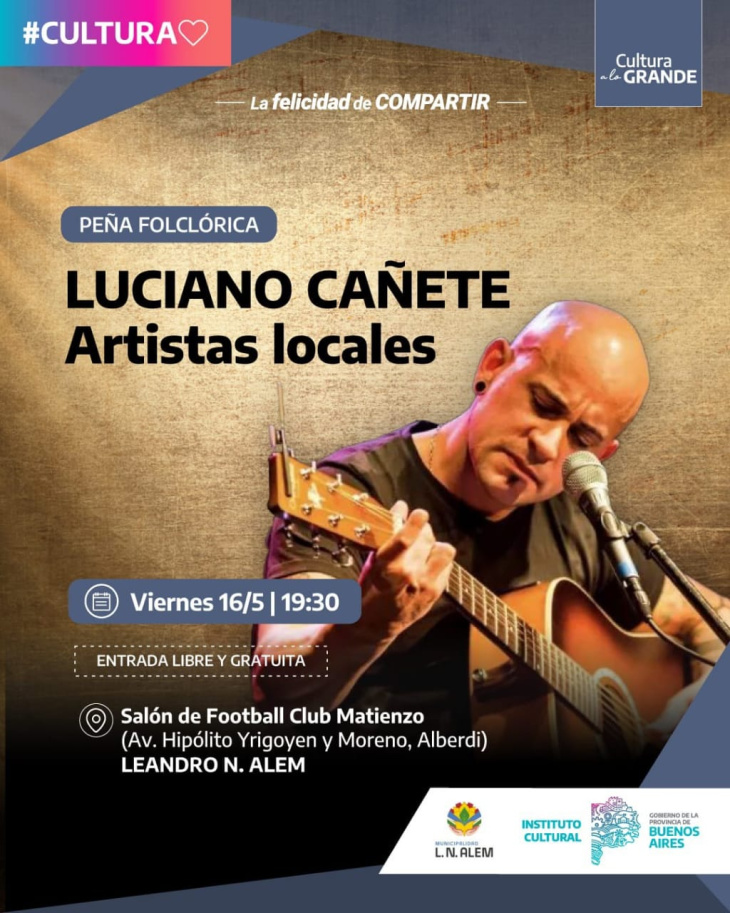 -MÚSICA: LUCIANO CAÑETE (Folclore) en Salón Football Club Matienzo (19.30hs), Av. H. Yrigoyen y Moreno, Alberdi.
