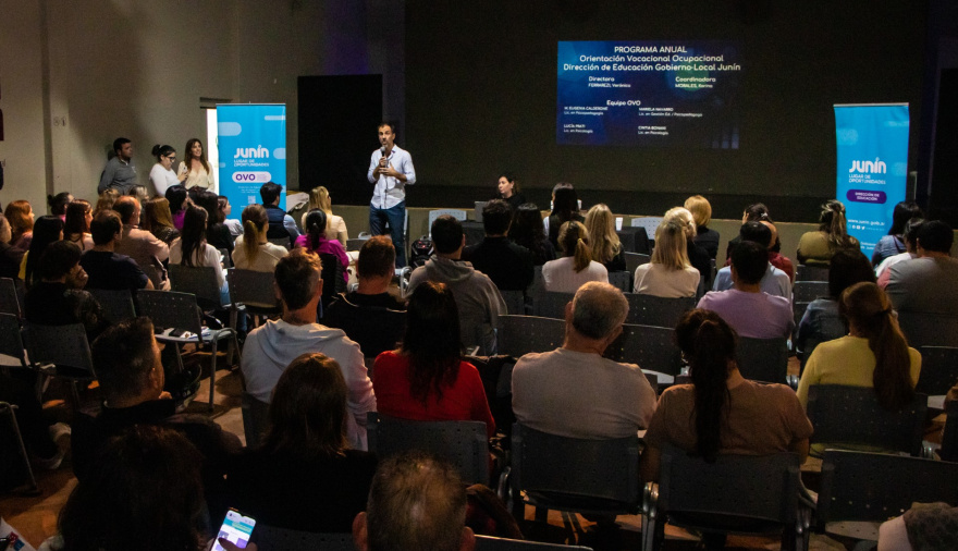 Con la presencia del intendente de Junín, Pablo Petrecca, se llevó a cabo en "El Salón" la reunión donde adultos responsables de los alrededor de 200 alumnos que cursan el último año del secundario conocieron al equipo de profesionales que llevará adelante las actividades del programa de Orientación Vocacional Ocupacional (OVO), iniciativa municipal que busca acompañar a los jóvenes en la toma de decisiones respecto a su futuro educativo, laboral y personal.