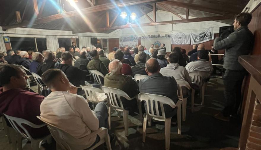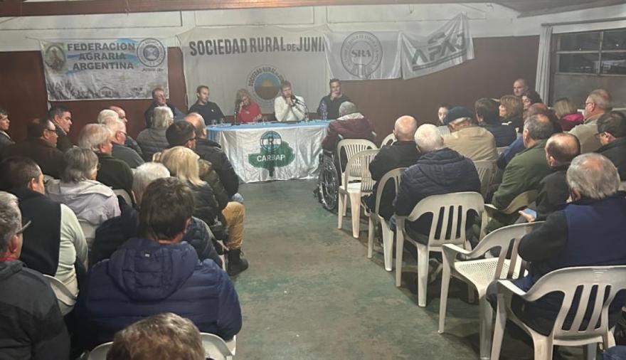 Con una concurrencia que superó los 200 asistentes, este lunes 19 de mayo se llevó a cabo una asamblea de productores rurales en el predio de la Sociedad Rural de Junín, ubicado sobre la Ruta 7, en cercanías al Parque Natural Laguna de Gómez. La convocatoria fue impulsada por distintas entidades representativas del sector: la Sociedad Rural de Junín (CARBAP), la Federación Agraria Argentina Filial Junín, la Asociación de Productores de Junín, la Sociedad Rural Argentina y la Liga Agrícola Ganadera Cooperativa Ltda.