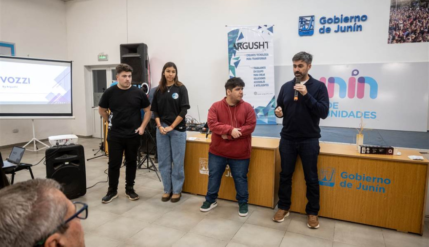 El viernes por la tarde en el “Salón de la Llama Olímpica” del complejo “Gral. San Martín” se concretó la presentación de la aplicación Vozzi desarrollada por los jóvenes de “Argusth”, ante un gran marco de público compuesto por funcionarios municipales, legisladores, representantes de diferentes instituciones y vecinos de Junín.