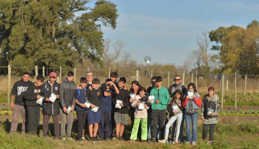 En el marco de las actividades de integración y aprendizaje del programa Envión, un grupo de alumnos visitó la Huerta Municipal de Leandro N. Alem, donde fueron recibidos por el Subsecretario de Producción, Ambiente y Economía Social, Alejandro Loeda, y por Juan Cruz Díaz, encargado de la huerta.