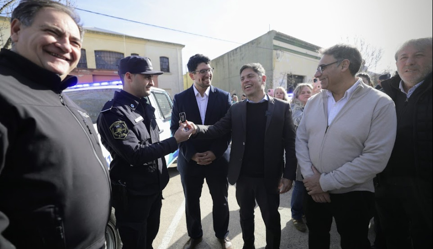 El gobernador de la provincia de Buenos Aires, Axel Kicillof, encabezó este viernes el acto de entrega de nuevos patrulleros para fortalecer la seguridad en el municipio de Florentino Ameghino, junto al ministro de Seguridad, Javier Alonso, y el intendente local, Nahuel Mittelbach. Además, se otorgaron 207 escrituras gratuitas en beneficio de familias del distrito.