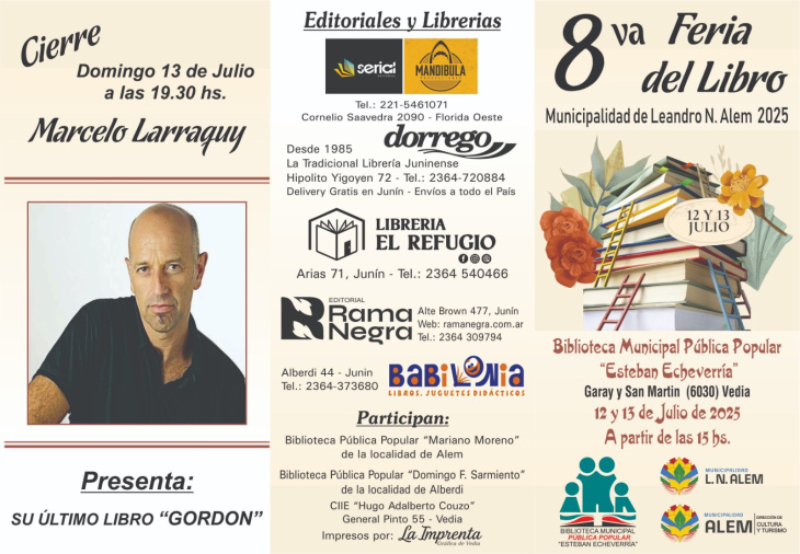 El sábado 12 y domingo 13 de julio se realizará la octava edición de la Feria del Libro en la localidad de Vedia, Partido de Leandro N. Alem.