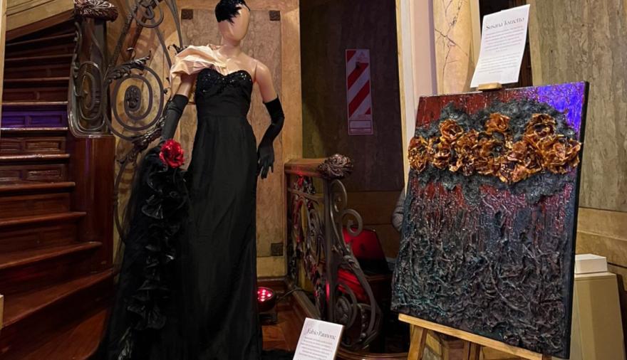 En esta oportunidad, Pannone compartió escenario con la artista plástica Susana Tozzetto, también oriunda de San Luis, con quien articuló una intervención artística singular: una de sus piezas de indumentaria fue concebida como interpretación de una pintura de la artista.