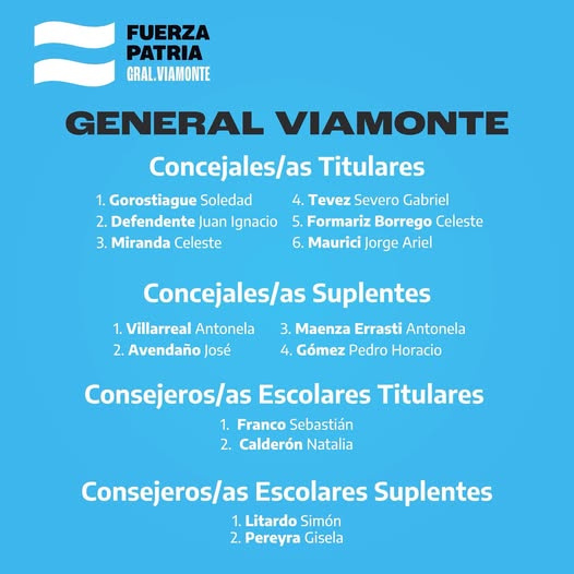 La lista de candidatos de Fuerza Patria en General Viamonte representa así una propuesta que busca combinar experiencia, juventud y compromiso local para afrontar los próximos desafíos municipales con un fuerte espíritu de participación y defensa de la comunidad.
