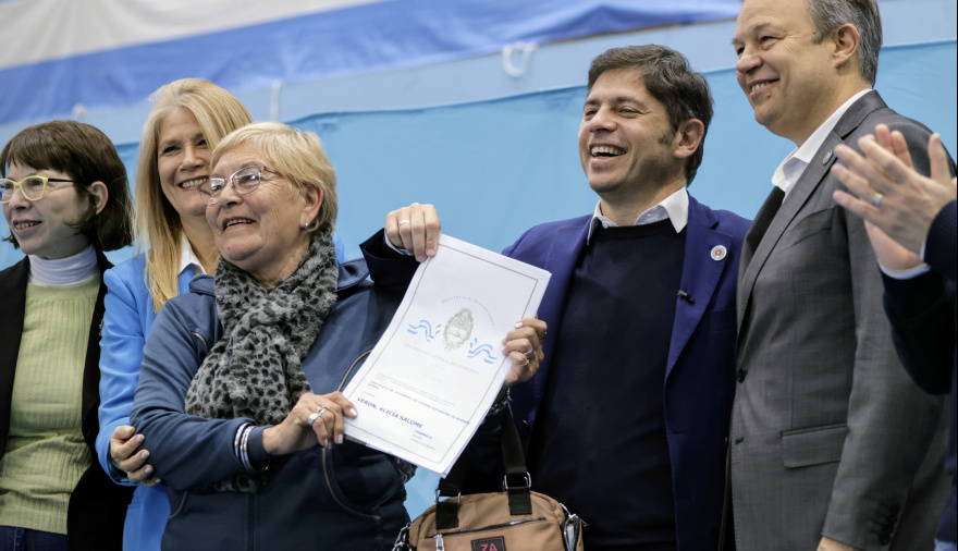 "Con estas escrituras que estamos entregando hoy no solo venimos a reconocer derechos que fueron postergados durante mucho tiempo, sino a expresar una vez más la importancia de sumar la fuerza necesaria para defender a las y los bonaerenses", subrayó Kicillof y añadió: "No podemos permitir que la motosierra entre a la provincia de Buenos Aires para destruir al Estado y dejar a millones sin acceso a la salud, la vivienda y la educación".