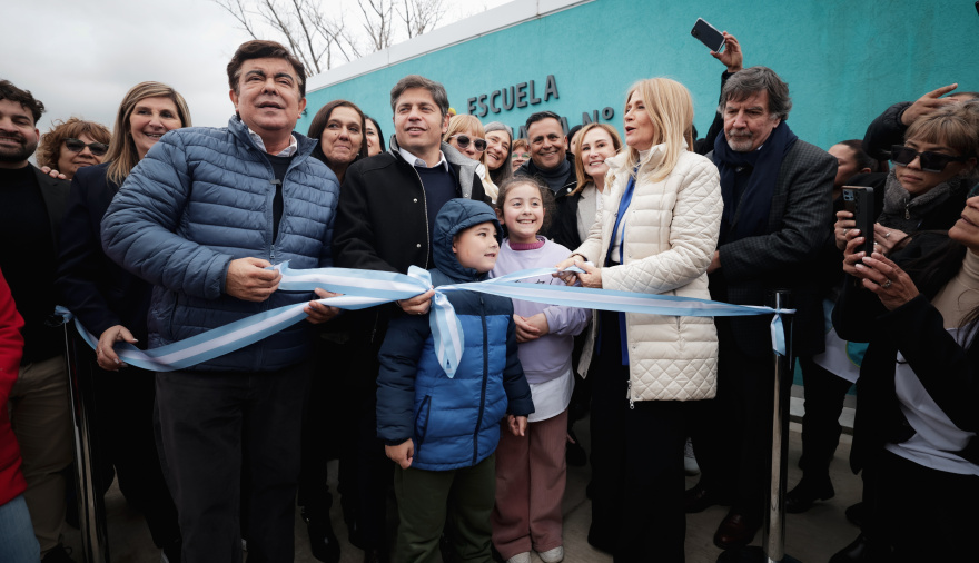 El gobernador de la provincia de Buenos Aires, Axel Kicillof, y la vicegobernadora Verónica Magario encabezaron este jueves la inauguración de la nueva Escuela Primaria N°218 en el municipio de La Matanza, donde además recorrieron los avances de las obras de repavimentación que se llevan a cabo en el barrio Sarmiento. Fue junto al director general de Cultura y Educación, Alberto Sileoni; el ministro de Desarrollo de la Comunidad, Andrés Larroque; y el intendente local, Fernando Espinoza.