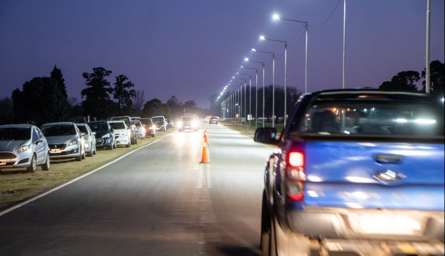 La obra contempla 150 columnas de luz que se extienden desde Posadas hasta el cruce con la Ruta Nacional 188, brindando mayor seguridad y visibilidad a todos los vecinos que transitan diariamente por esta arteria.