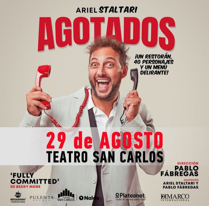 Entre lo más destacado, este viernes se presentará a las 21.30 horas el reconocido actor Ariel Staltari con su unipersonal “AGOTADOS” en el teatro San Carlos, ubicado en la avenida Arias 110 de Junín.