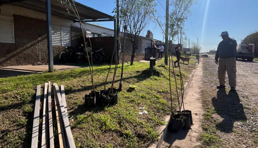 En esta oportunidad, a través del área de Medio Ambiente, se inició la plantación de ejemplares de árboles aptos para veredas en distintos barrios del distrito, una acción que busca no sólo embellecer los espacios urbanos, sino también generar más sombra, mejorar la calidad del aire y acompañar el crecimiento ordenado de los servicios urbanos.