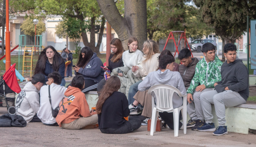 Con música a cargo de Estudio Cero, mates compartidos y puestos de comidas, la jornada se transformó en un espacio de encuentro ideal para las promos y para el clásico ritual de socializar, entre charlas y celulares.