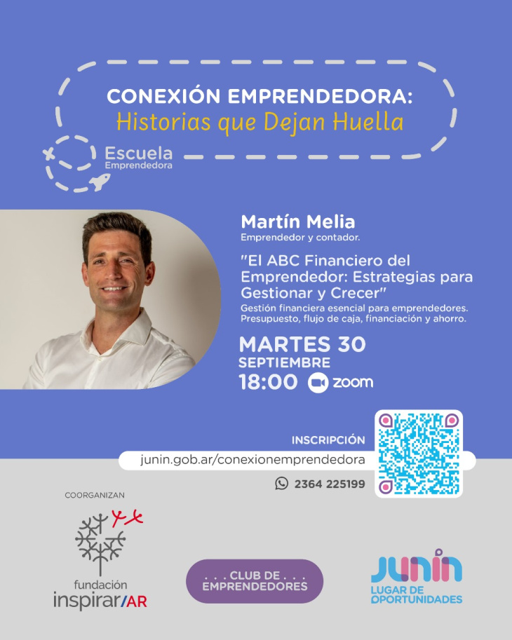 Cabe destacar que esta actividad se realiza de manera conjunta entre la Fundación Inspirar/AR, el Club de Emprendedores Junín y la Escuela Emprendedora, con el respaldo del Gobierno de Junín, reafirmando la importancia de generar espacios de formación y acompañamiento para quienes buscan crecer con sus iniciativas.