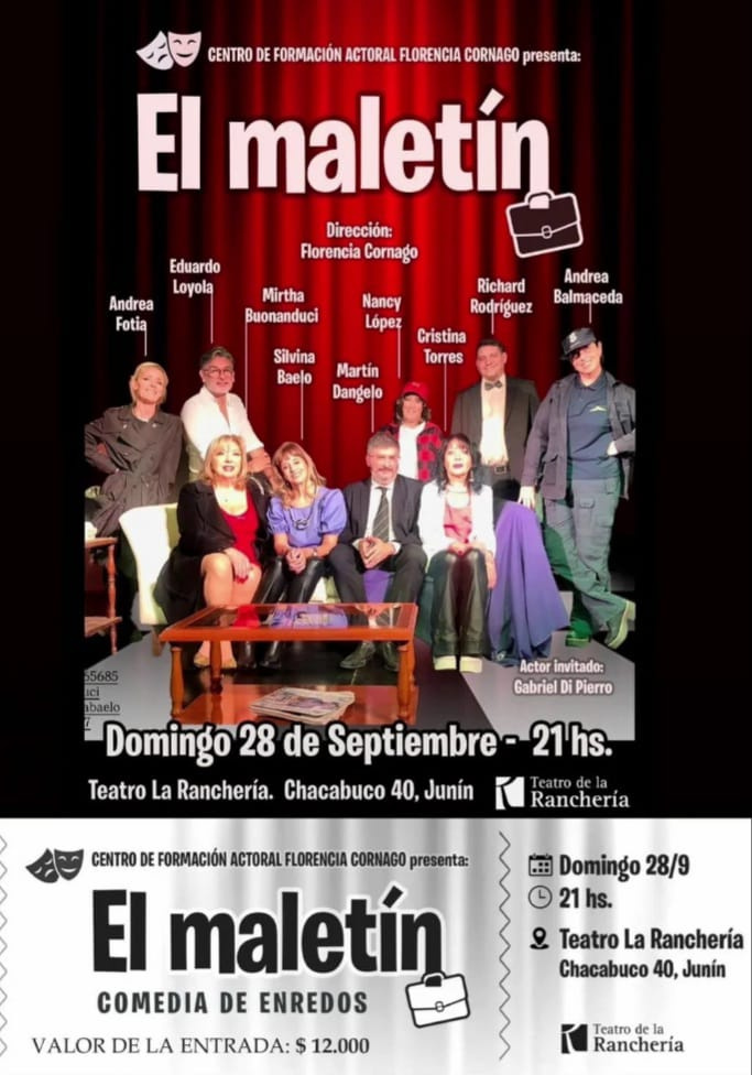Teatro: El Maletín (Comedia) – 21 hs en Teatro La Ranchería (Chacabuco 40, Junín).