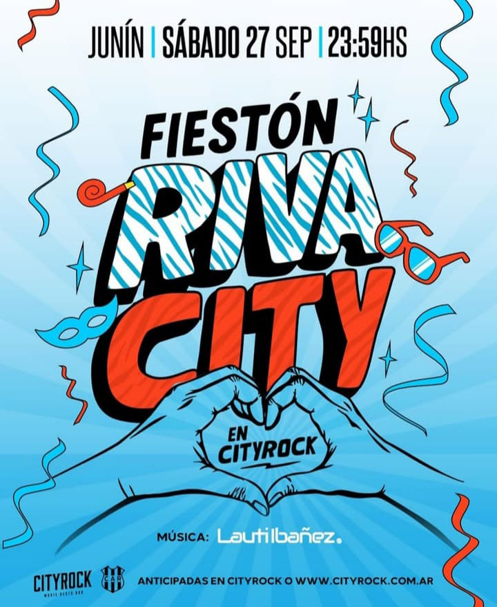 Música: Riva City con Lauti Ibañez (Baile) – 24 hs en City Rock (Roque Sáenz Peña y Jorge Newbery, Junín).