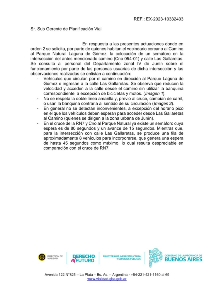El cruce entre el Municipio de Junín y la Provincia de Buenos Aires por la colocación de un semáforo en la intersección del Camino al Parque Natural Laguna de Gómez y Las Gallaretas sumó un nuevo capítulo.