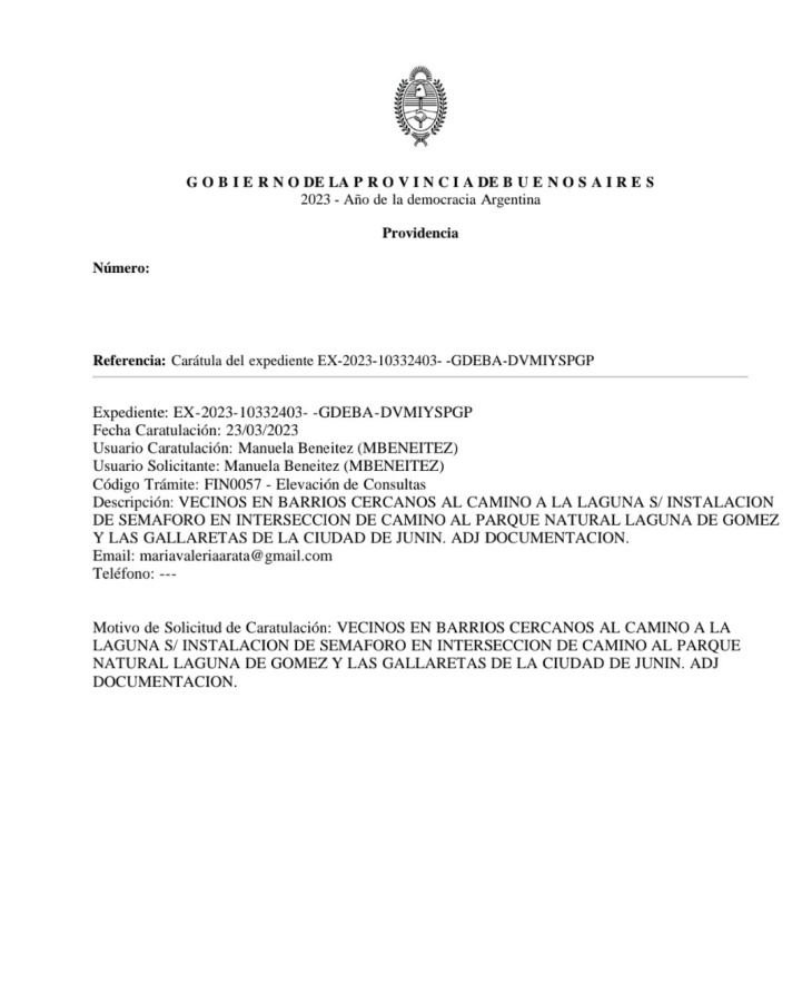 “Buenas noches, Pablo Petrecca. Seguimos trabajando sobre tu reclamo. El Municipio de Junín no hizo ningún pedido al respecto. Sí lo hizo un grupo de vecinos. Acá te paso la nota de solicitud y la respuesta”, expresó Arata, acompañando sus palabras con la documentación correspondiente.