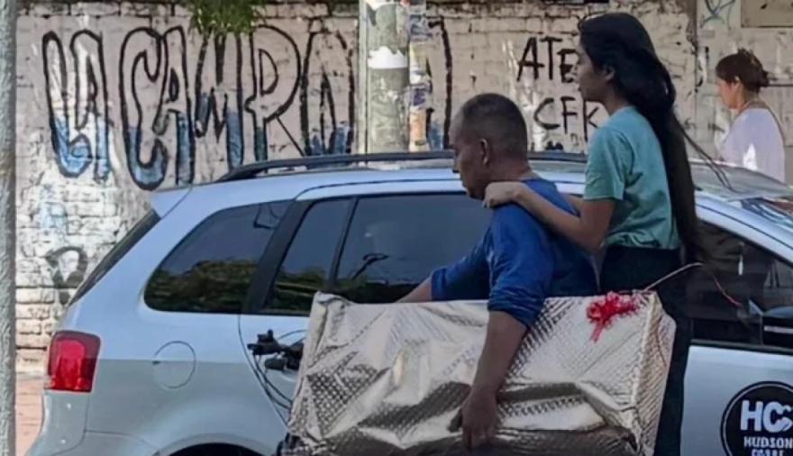 En este contexto, la imagen de un hombre que se viralizó en las redes sociales se convirtió en el símbolo perfecto del esfuerzo de miles de familias. En la foto, se lo ve haciendo equilibrio en su bicicleta para transportar un regalo de enormes dimensiones, envuelto en papel dorado y con un moño rojo, mientras su hija lo abraza por la espalda, compartiendo el viaje y la misión. La escena, capturada en una calle cualquiera, refleja el ingenio y la perseverancia para cumplir con el deseo de agasajar a la mamá, sin importar las dificultades.