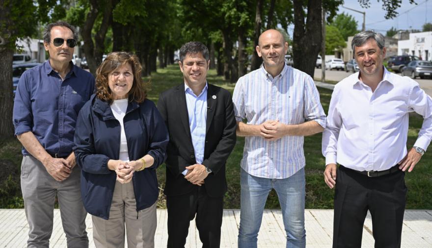 El gobernador de la provincia de Buenos Aires, Axel Kicillof, recorrió este miércoles junto a la intendenta de Carlos Tejedor, María Celia Gianini, los avances de las obras de construcción de 35 viviendas y, en el marco del programa Puentes, del primer centro universitario del distrito.