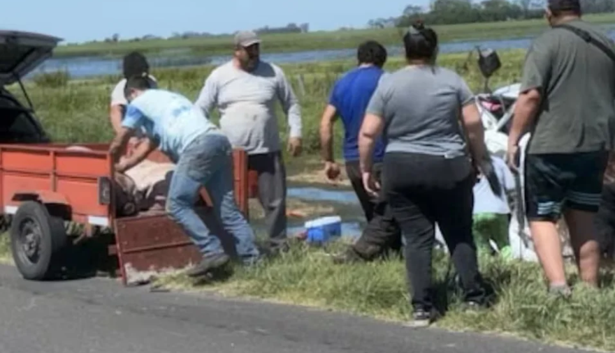 Un camión jaula que transportaba cerdos volcó en la Ruta Nacional 7 a la altura de Ingeniero Silveyra (entre Chacabuco y Carmen de Areco) y, en cuanto se enteraron de la noticia, los vecinos de la zona se acercaron para llevarse a los animales, ya sea vivos o muertos.