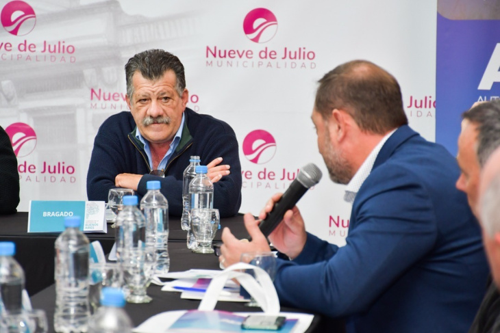 El encuentro tuvo lugar en el contexto de crisis hídrica que afecta a la región, con la presencia de los intendentes María José Gentile (Intendente de Nueve de Julio), Salvador Serenal (Lincoln), Sergio Barenghi (Bragado), Franco Flexas (General Viamonte); además del presidente de la Autoridad del Agua (ADA), Damián Costamagna (presidente); y el director provincial de Hidráulica, Flavio Seiano.