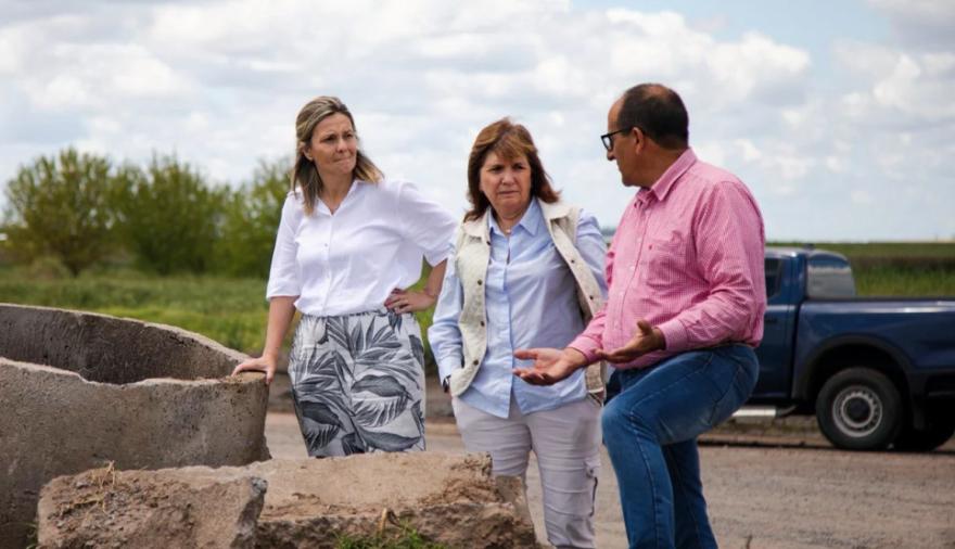 La ministra de Seguridad, Patricia Bullrich, visitó este sábado áreas rurales de la provincia de Buenos Aires afectadas por las inundaciones y supervisó operativos de asistencia junto a autoridades locales, productores y fuerzas federales.