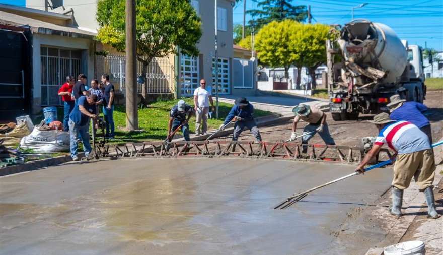 Castellazzi explicó que el plan de pavimentación se desarrolla con hormigón y contempla la participación coordinada de Obras Públicas, Espacios Públicos y empresas privadas.