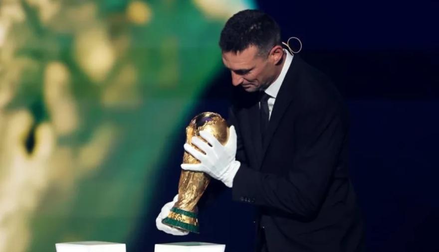 Scaloni, que protagonizó un emotivo momento al entregar la Copa del Mundo antes de que comience el sorteo, reconoció dicha situación como muy emotiva: “Tenerla en la mano es algo único”.