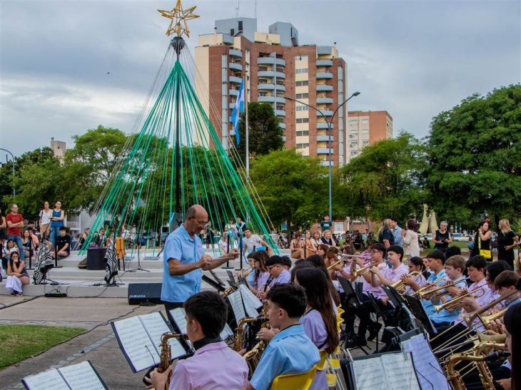 El evento contó con la participación de la banda municipal “Juan P. Oviedo” y del grupo folclórico “Los Gringos”. Además, el armado del arbolito contó con la participación de alumnos de las escuelas técnicas 1 y 2.