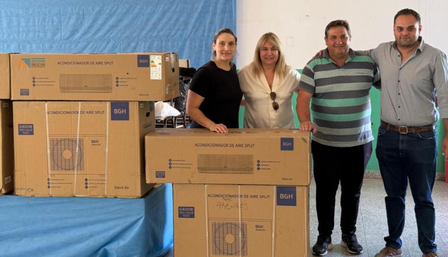 La intendente municipal, Érica Revilla, entregó equipos de aire acondicionado destinados al Salón de Usos Múltiples del Jardín de Infantes Juana Manso de la localidad de Arribeños, con el objetivo de mejorar las condiciones edilicias y garantizar un ambiente adecuado para el desarrollo de las actividades educativas.