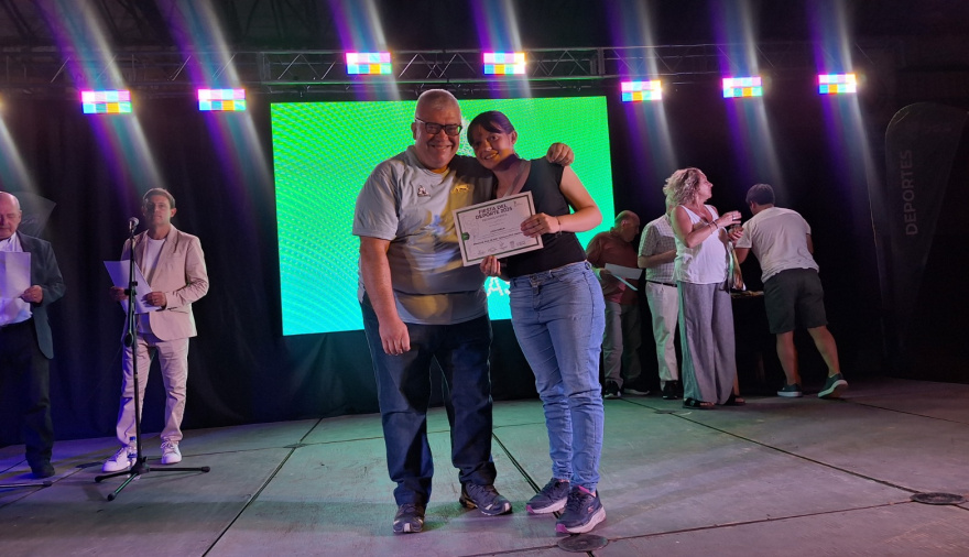 La velada también estuvo marcada por emotivos reconocimientos especiales. Fueron distinguidos Oscar Alberto Cardigni, periodista y conductor histórico de la Fiesta del Deporte a lo largo de sus 40 ediciones, y el profesor Rodolfo “Peto” Martínez, director municipal de Deportes al momento de impulsar este evento que hoy forma parte del patrimonio cultural y deportivo de la ciudad.