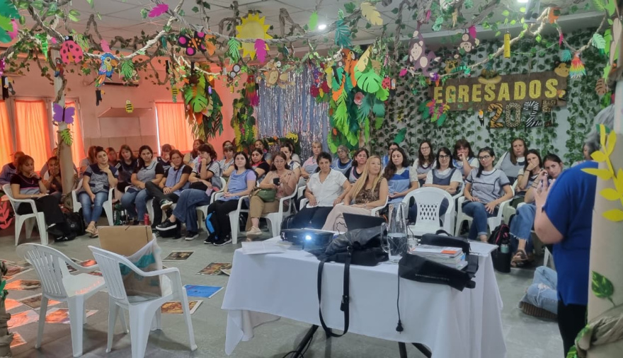 La actividad se desarrolló la semana pasada en el Jardín Maternal Arco Iris y estuvo a cargo de la licenciada Claudia Loyola, profesora en Ciencias de la Educación, quien abordó distintos ejes vinculados al rol docente en los primeros años de formación.