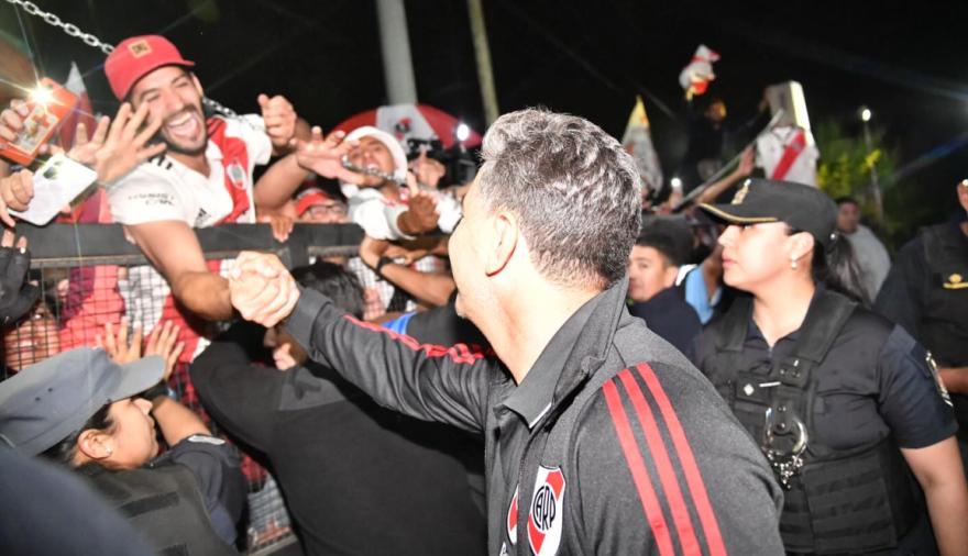 A pesar del cansancio del viaje, Gallardo y varios jugadores se acercaron a los simpatizantes para saludar, firmar camisetas y tomarse fotos, en una muestra del fuerte vínculo con la gente.