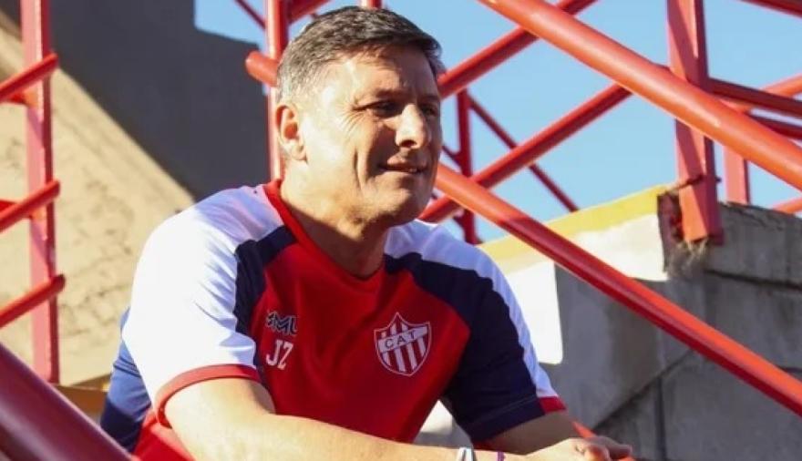 En el frente de la camiseta, del lado izquierdo, se destaca el escudo del club (C.A.T.), mientras que del lado derecho aparecen las iniciales “JZ” junto al logo de la marca deportiva. El conjunto se completa con un pantalón corto azul marino, en sintonía con los colores laterales de la remera, reforzando una identidad visual moderna y sobria.