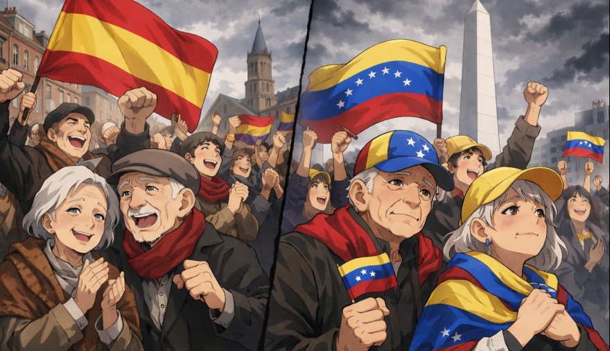 Es difícil no recordar ese episodio hoy, cuando la diáspora venezolana se volcó a las calles del mundo tras la caída de Nicolás Maduro. En ciudades que no eligieron pero que los recibieron —a veces con generosidad, otras con indiferencia— miles de venezolanos se abrazaron, lloraron y cantaron, desde el sur de Argentina hasta el norte de Canadá. No celebraban solo el fin de un régimen: celebraban la posibilidad de que el dolor tuviera, por fin, un sentido. La imagen se repite: exiliados festejando en tierras ajenas, mientras el destino de su país se decide lejos de ellos.