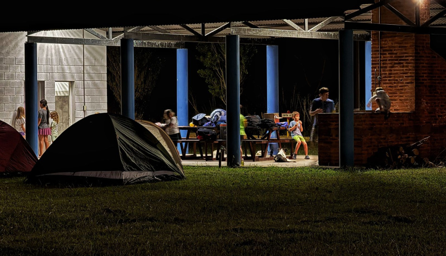 El cierre fue un verdadero acampe, organizado y acompañado por docentes y auxiliares, bajo la coordinación de Facundo Luengo, responsable del espacio. Carpas, parrilla, juegos de luces, fogón con cuentos —incluidos los clásicos relatos de terror— y hasta la pileta, aprovechando las altas temperaturas nocturnas, formaron parte de una noche llena de emociones.
