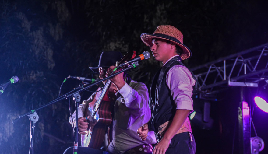 El escenario fue el gran punto de encuentro. Pasadas las 21 horas, con la conducción de Catriel Duré, abrió la noche un dúo de recitado y canto folklórico integrado por Alan Rodríguez y Raúl Coronel, que aportaron tradición y emoción.