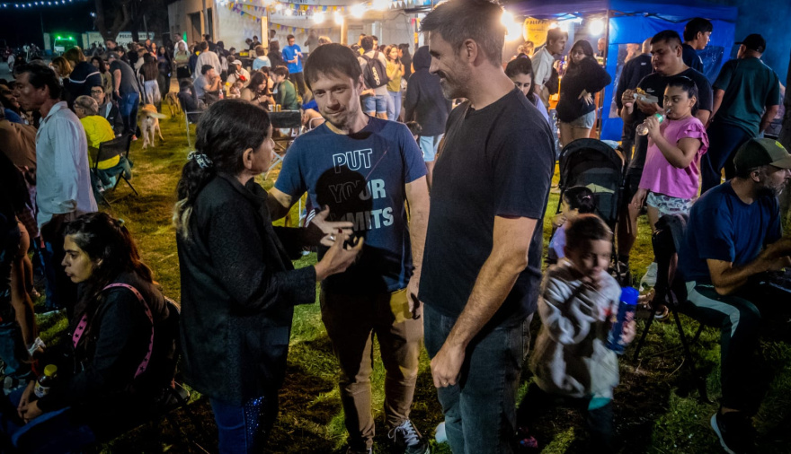 Por su parte, Carina Grenillón, presidenta de la sociedad de fomento, recordó los inicios del festejo y su evolución: “Empezamos en el patio de la Sociedad de Fomento, era algo muy pequeño, pero fue creciendo hasta que el espacio quedó chico. Cuando quisimos acordar, ya teníamos las tres cuadras llenas”. En relación al acompañamiento estatal, agregó: “El Municipio siempre nos ayudó, estuvieron pendientes de nosotros y siempre vieron todo de manera positiva. Quiero agradecer especialmente a Juan y a Manuel, que siempre están atentos y nos dan una mano”. Con entusiasmo, concluyó: “Me encanta que hayan venido, disfruten porque vamos a tener una noche inolvidable”.