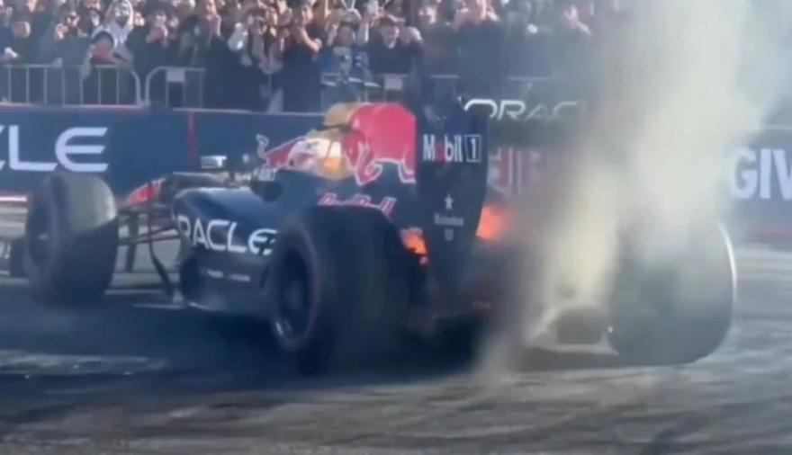 Un Red Bull de Fórmula 1 usado por el japonés Yuki Tsunoda se prendió fuego este domingo, durante una exhibición llevada a cabo en San Francisco.