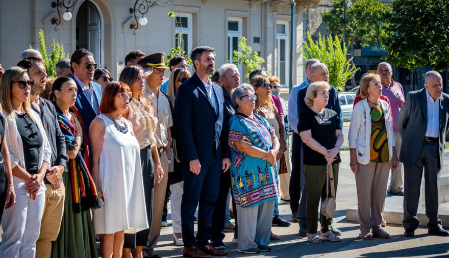 El Gobierno de Junín, junto a la Asociación Cultural Sanmartiniana, llevó a cabo el acto oficial, que inició con el izamiento del pabellón nacional y la entonación del himno, con la presencia del Intendente Juan Fiorini, la presidente del Honorable Concejo Deliberante, Dra. Agustina de Miguel, la presidenta de la Asociación Cultural Sanmartiniana, Ana María Trinidad, el presidente de la Federación de Sociedades de Fomento, Julio Míguez, y el Jefe del Grupo de Artillería 10, Teniente Coronel Gonzalo Crespo.