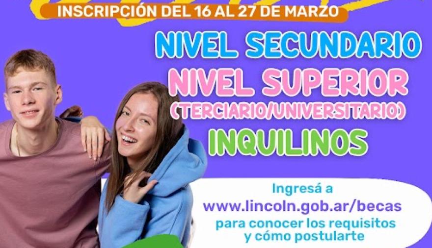 La Municipalidad de Lincoln informó que del 16 al 27 de marzo estará abierta la inscripción al programa “Becas Municipales 2026”, destinado a estudiantes linqueños del Nivel Secundario y del Nivel Superior.