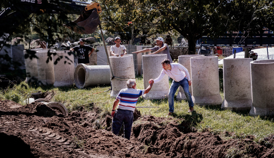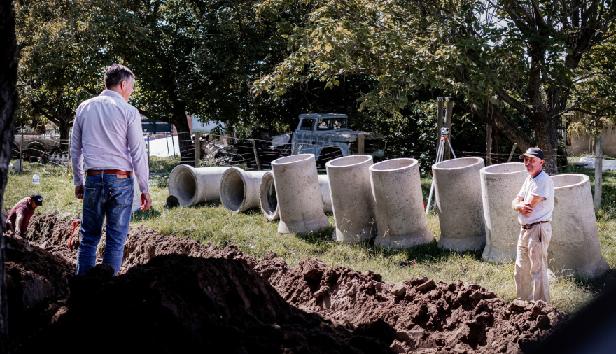 La Municipalidad de General Viamonte inició la obra de construcción de desagües pluviales sobre la calle Río Negro, entre Lisandro de la Torre y Bragado, en la ciudad de Los Toldos.