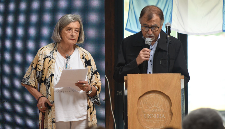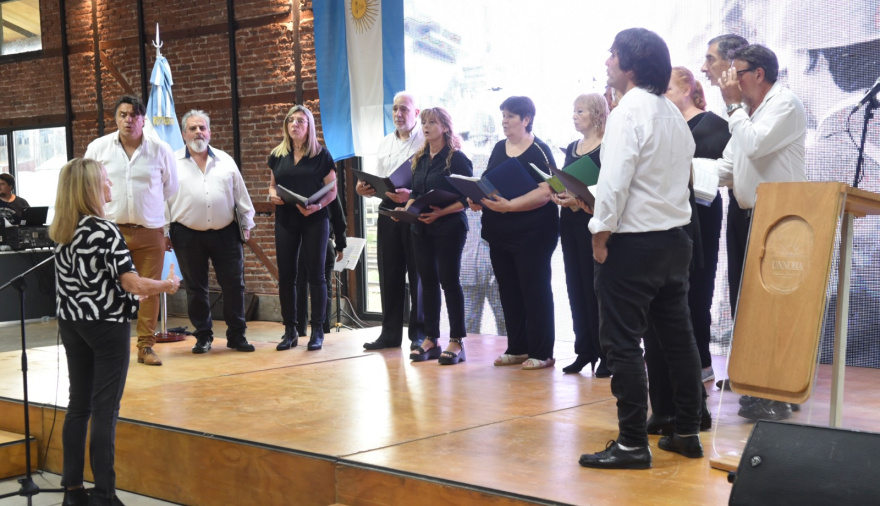 El acto comenzó con la actuación del Coro de la UNNOBA, que interpretó dos emotivas canciones: “Juntos a la par”, popularizada por Norberto Pappo Napolitano, y “Yo vengo a ofrecer mi corazón”, de Fito Páez.
