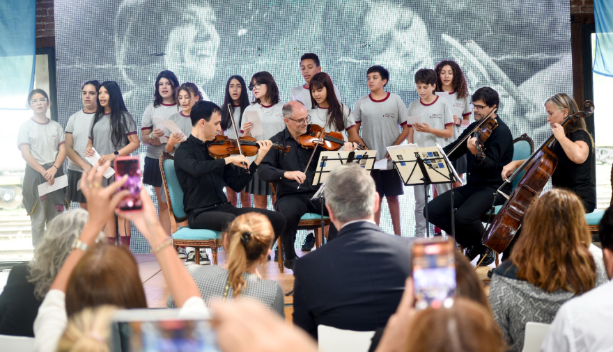 Le siguió una actuación del Cuarteto de Cuerdas de la UNNOBA, que interpretó “Los dinosaurios”, de Charly García”, y “Sólo le pido a dios”, de León Gieco”. En un emotivo cierre, los músicos interpretaron “La cigarra”, de María Elena Walsh, que fue cantada por estudiantes de la escuela secundaria.