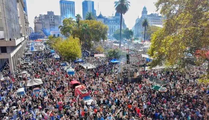 La frase despertó gritos de los manifestantes, con “Milei basura vos sos la dictadura” como consigna preponderante.