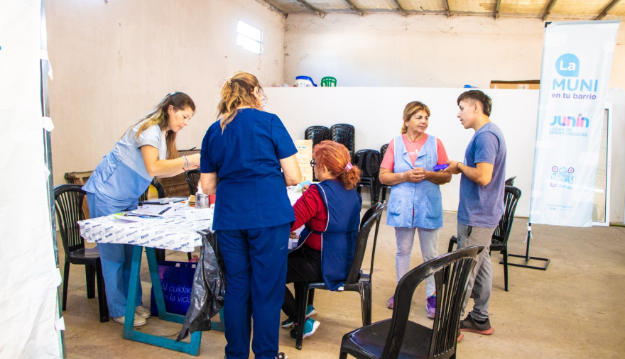 El Gobierno de Junín llevó adelante una nueva jornada del programa municipal “La Muni en tu Barrio” en la Sociedad de Fomento del barrio Los Almendros, donde se brindó atención integral a los vecinos con la participación de múltiples áreas municipales.