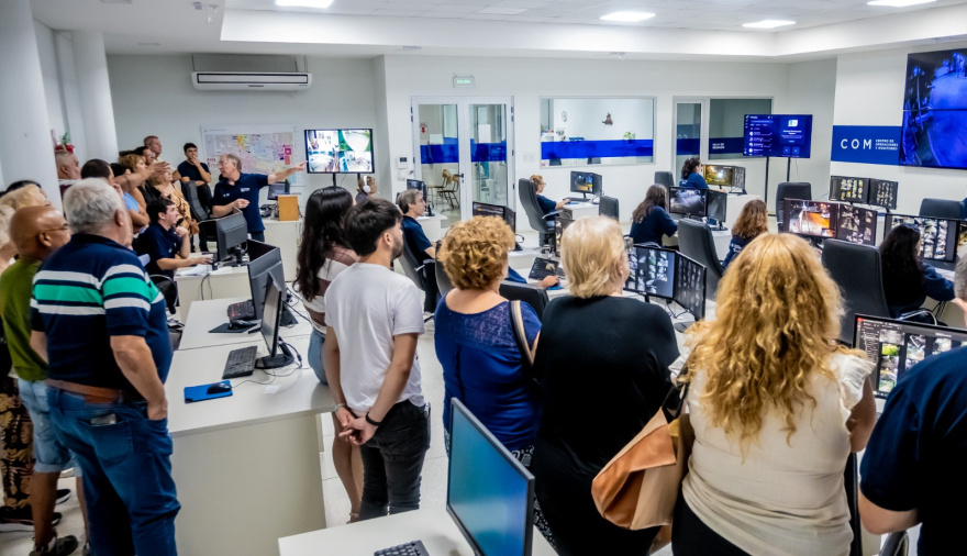 Durante la jornada, los presentes pudieron observar el funcionamiento de las 750 cámaras distribuidas en todo el Partido y conocer la dinámica de trabajo coordinado entre los operadores y las fuerzas policiales.