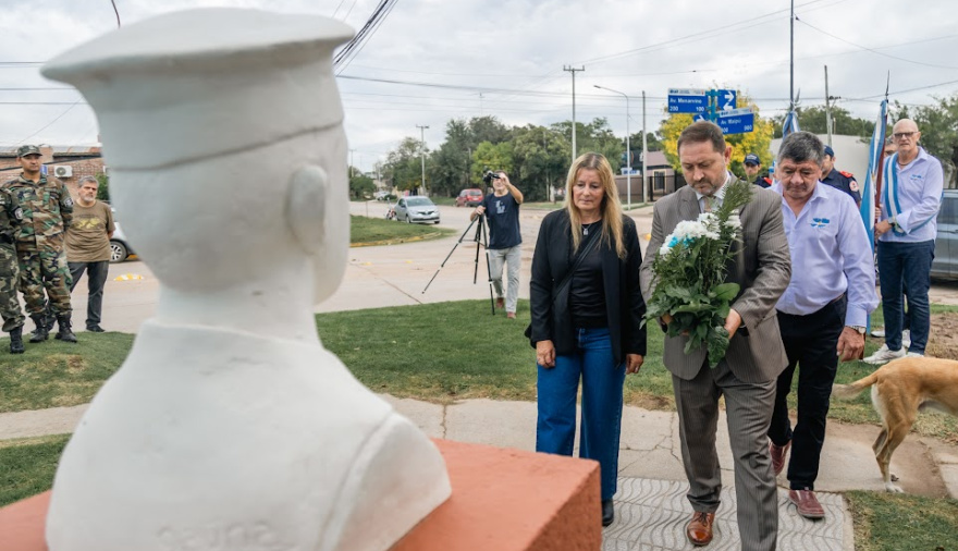 En horas de la mañana, autoridades y veteranos participaron de un acto en memoria de Hugo Alberto Heredia, en el barrio Plaza España, donde se encuentra el busto que lo recuerda.